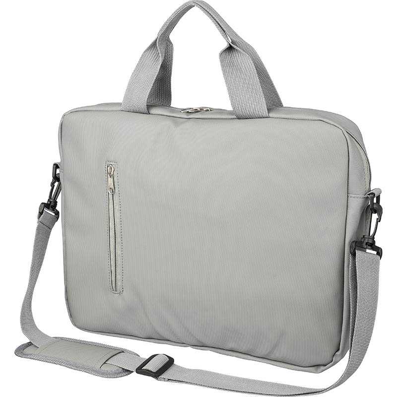 Polyester (600D) laptop bag, with a front zippered pocket, large zippered and padded compartment (14 inch), including a pocket with Velcro closing, two small carry handles and an adjustable shoulder strap.