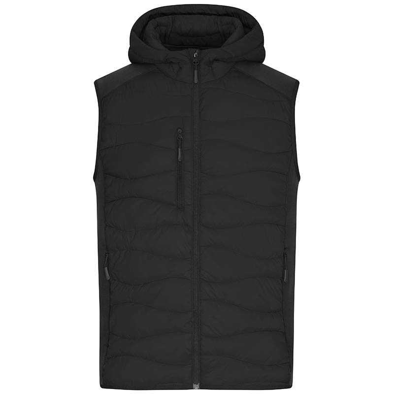 Sportovní vesta s kapucí a prošíváním Prošívaný je přední a zadní díl a kapuce Na bocích strečový fleece Zip po celé délce, ochrana brady Náprsní kapsa a boční kapsy na zip 2 vnitřní kapsy Velmi teplá díky výplni sorona®AURA Značkové zipy - YKK