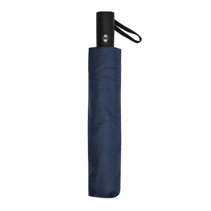 Convenient automatic open/close function for quick opening and closing, high-quality Windproof PLUS system for maximum frame flexibility in stormy conditions, depending on the colour, also available with waterSAVE® label on the closing strap (with new deliveries), chromed steel shaft, Soft-Touch handle in colour matching cover with silver push-button, elastic loop and promotional labelling option, sleeve with black piping. Also available as another mini pocket umbrella (art. 5565), as regular umbrella (art. 7560) and golf umbrella (art. 7580).