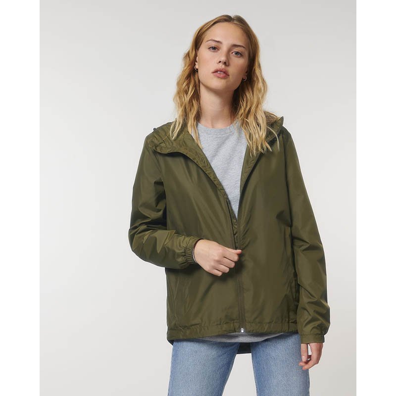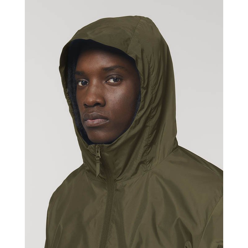 Vnější tkanina ze 100 % polyesteru Ripstop 400T se 100 % pleteným polyesterem. Polstrování a podšívka z polyesteru. Odolné proti větru a vodě. Přiléhavý střih. 2 velké přední kapsy. Vnitřní kapsa. Elastické manžety. Kvalitní reverzní zipy. Nastavitelná ka
