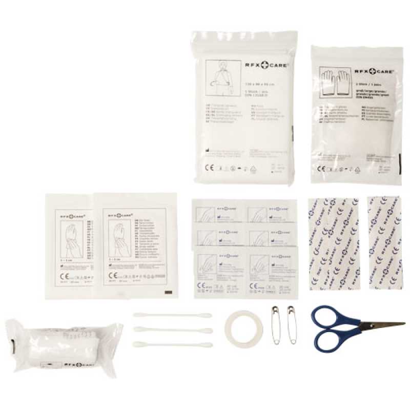 Kompletná autolekárnička prvej pomoci obsahujúca 40 kusov zdravotníckych potrieb pre prvú pomoc. Obsah: 1 ks lepiaceho obväzu 2,5 cm x 5 m, 4 ks náplastí 10 x 6 cm, 2 ks náplastí 3,8 x 7,2 cm, 2 ks náplastí 12 x 2 cm, 2 ks náplastí 7,2 x 1 ,9 cm, 4 ks náp