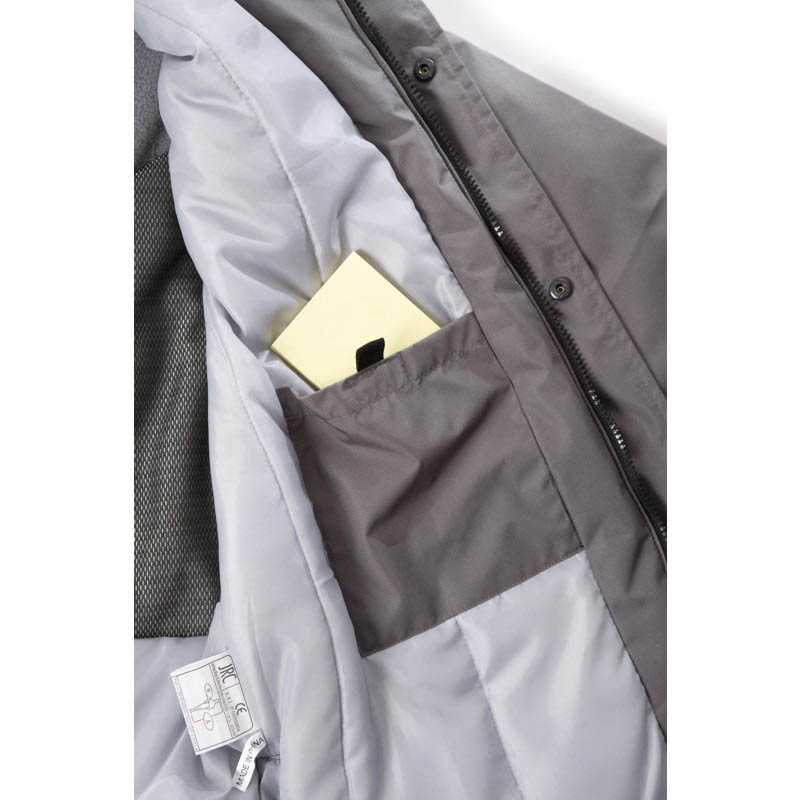 100 % polyester.Vnější vrstva: 100 % polyesterový ripstop.Dvouvrstvá prodyšná tkanina 3 000g/m2/24h a voděodolná tkanina 1 0000 mm.Splňuje normu EN343:2019, třída 3 (oděv chrání před deštěm).Podšívka: 100 % polyester.100% polyesterové vnitřní polstrování.Přední díl: 2 boční kapsy a 1 náprsní kapsa se zapínáním na nylonový zip, odolné proti vodě.1 vnitřní kapsa na suchý zip.Zapínání na zip s légou proti dešti a zapínáním na suchý zip.Kontrastní lemování na hrudi.Podšitá a polstrovaná třídílná kapuce odnímatelná pomocí nastavitelného zipu s koncovkami a suchým zipem.Nastavitelná manžeta na suchý zip.2dílná podšívka: horní díl z flísu, spodní díl polstrovaný.Nastavitelný lem s koncovkami.Skrytý vnitřní zip pro ozdobení: 1 vlevo, 1 lem.Poutko na zavěšení uvnitř průkrčníku.Odtrhávací etiketa značky.