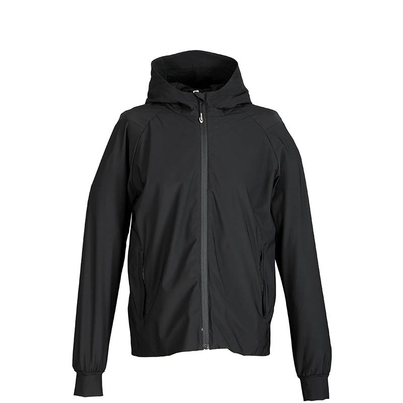 NOVINKA 2025. JACKET WITH WATER-REPELLENT TREATMENT - 79% nylon – 21% elastane - Not padded - Stretch fabric - Polyester lining with ripstop processing in the front and in the hood - Hood with reflective detail - Reflective detail on the chest - Two external covered zip pockets - Coat hanger inside the collar - One internal zipped wallet pocket - Central zip with internal windproof fabric - Chin protection fabric - Cuffs and bottom in stretch fabric - No label