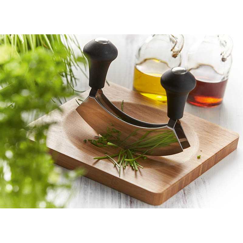 Herb chopper set BUNCH: set incl. double-bladed mezzaluna and chopping board with a shallow indentation, made of bamboo