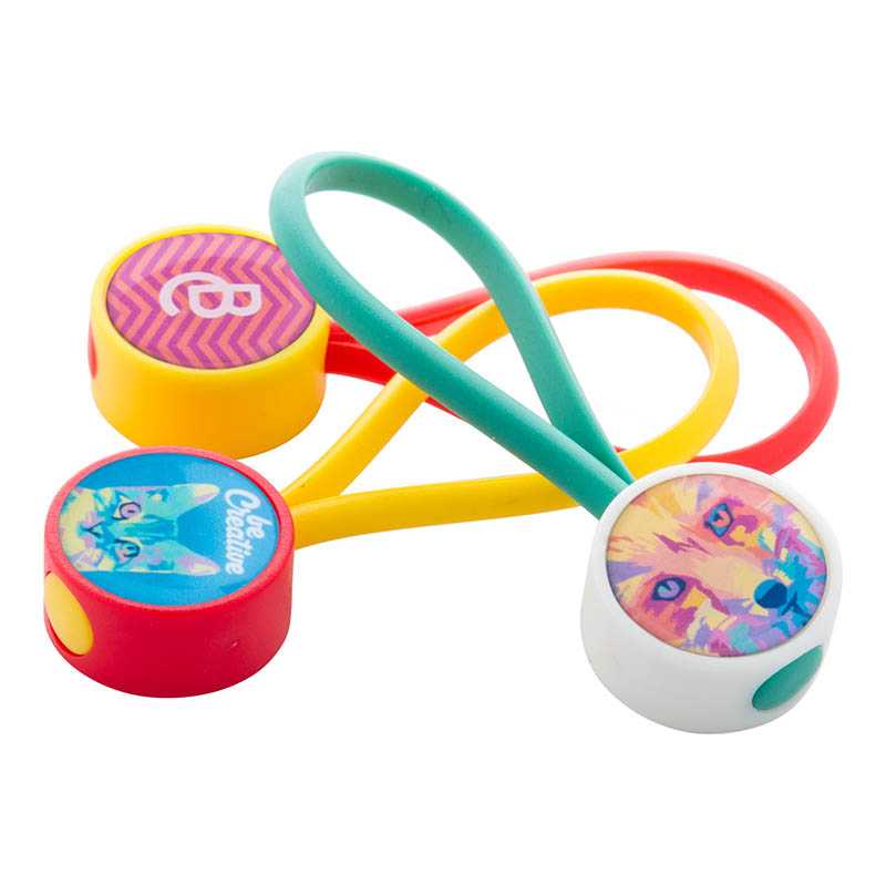 Zakázková výroba kulatého plastového přívěšku na klíče s gumovou smyčkou. Přívěšek je možné nakombinovat v požadovaných barvách přívěšku a smyčky. Cena zahrnuje epoxy potisk, nezahrnuje tiskovou přípravu. Min. mn.: 100 ks.