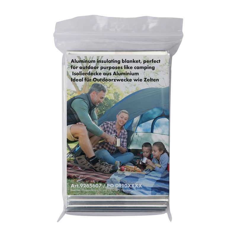 Hliníková izolačná deka s puzdrom. Je tiež ideálna na pikniky a kempovanie vďaka svojej vodeodolnosti.