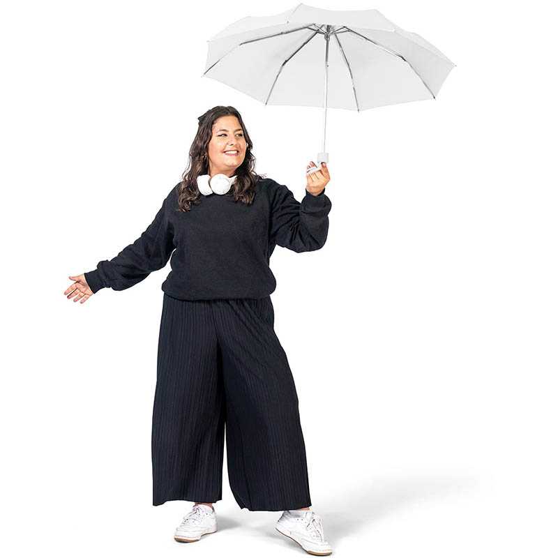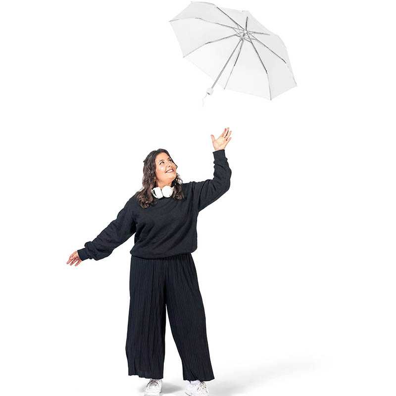 Easy to handle thanks to sliding safety runner, Windproof system for higher frame flexibility and stability in windy conditions, Soft-Touch handle with promotional labelling option, suitable for handbag through ultra-light weight