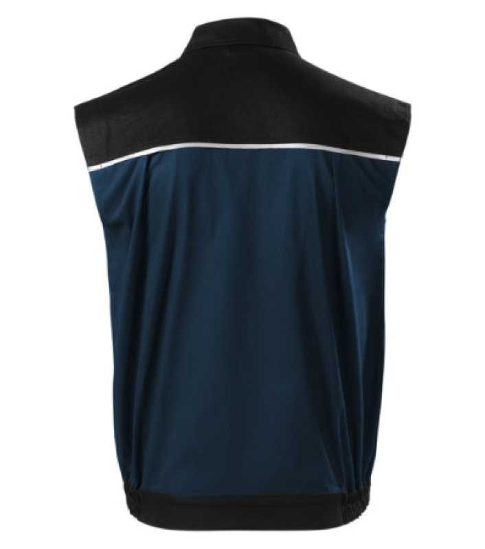 "Soft shell waistcoat waterproof and breathable - 92% Polyester - 8% elastan - Waterproof-6000 mm/H2O - Resistance to moisture g/m2/24h 4000 - Reflective thin band - Covered zippers - One chest pocket with zip and fold-away badge-pocket - Two outside pocke"