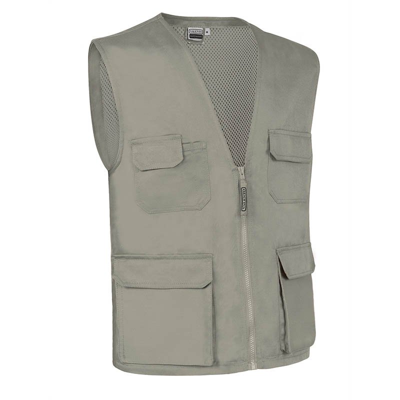Work Vest for warm environments maintaining the same functionality and shape of our well-known REPORTER vest. Made of a sturdy cotton twill fabric blended with polyester for strength and durability and an inner back mesh lining for improved breathability and a better airflow.Full-zip front closure and opened V-neck for extra comfort.Straight-cut double-stitched bottom hem for added strength and durability. Two front gusseted pockets and side slits leading to two more pockets, two upper pockets all with velcro flap closure, for a secure and convenient storage, it also includes two pen holders.Includes an inside back zip for easy marking with different methods: screen printing, embroidery, transfer printing, shields, vinyl application. Ideal as workwear.