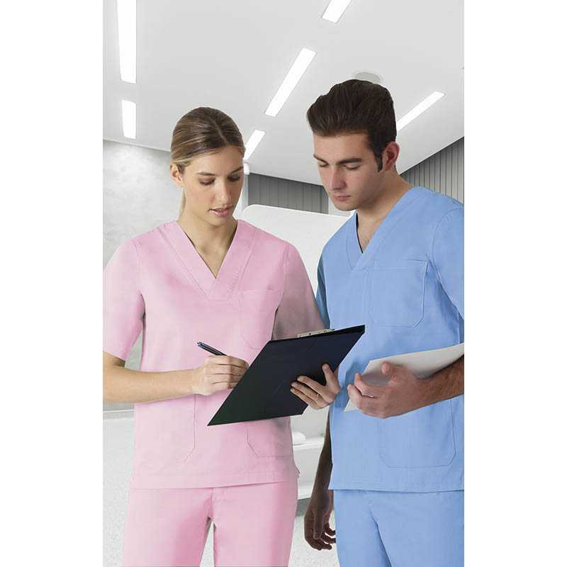 Short Sleeve Scrub Top.Made of a sturdy cotton twill fabric blended with polyester for strength and durability.A wide V-neck, for optimal comfort and a refreshing feel.Two front patch pockets and a left chest patch pocket for convenient storage and showcase the branding. Side slits at the bottom for enhanced mobility and greater comfort. Suitable marking methods: screen printing, embroidery, transfer printing, vinyl application.Ideal as workwear and healthcare uniforms, pairs well with PIXEL trousers.