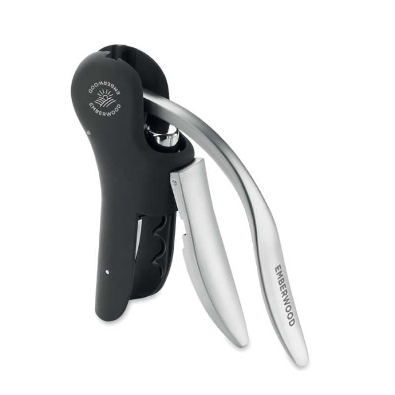 ABS a zinkový otvárač na víno s pogumovaným povrchom. Jeho automatická páka umožňuje jednoduché odstránenie korkových zátok z fliaš len niekoľkými pohybmi. Dodávané v darčekovej krabičke.