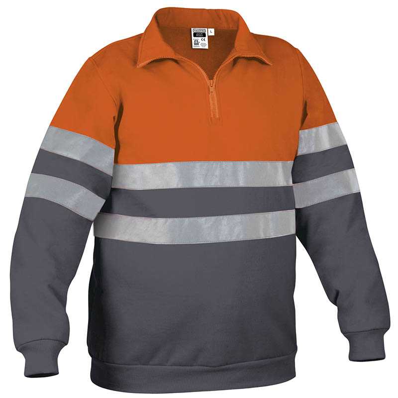 Enhanced Visibility Half-Zip Sweatshirt.Made of plush polyester fabric with a soft cotton-like touch for a comfortable feel with an inner brushed for optimal thermal insulation and extra comfort, includes two sewn reflective tapes on torso, back and sleeves to enhance user visibility. Garment certified as an Enhanced Visibility Category II PPE based on 13688 and 17353 standards, type B3 for night visibility.Stand-up collar with half-zip opening offering versatility for warmth or additional ventilation based on the season.Elasticated ribbed cuffs and waistband for comfortably fitting.Suitable marking methods: screen printing, embroidery, transfer printing, vinyl application.Ideal as workwear and uniforms.