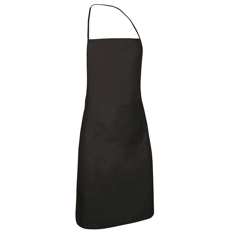 Pocket Bib Apron.Made of polyester flat weave with a soft cotton-like touch for a comfortable feel. Side straps for optimal waist adjustment, tied with a knot and slim neck straps for a better fit.Wide central waist pocket for convenient storage.Hem-stitched contour seams for added strength and durability.Suitable marking methods: sublimation on white, screen printing, embroidery, transfer printing, vinyl application.Ideal as hospitality clothing, promotional clothing and for a personalised gift.
