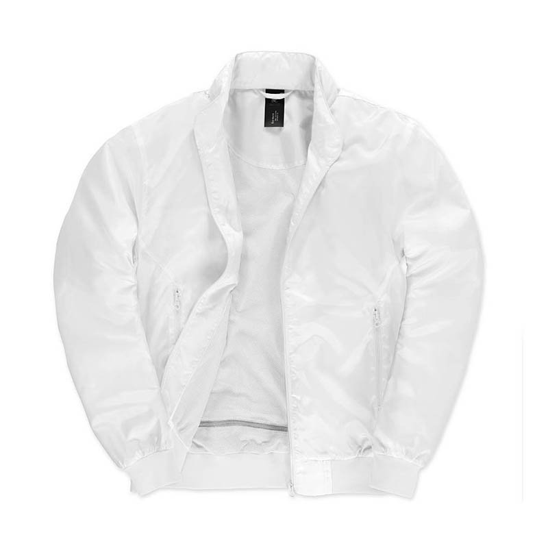TRENDY LIGHTWEIGHT BOMBER JACKET ·Ergonomic concealed hood ·Diamond mesh lining ·Trendy lightweight bomber jacket with ergonomic concealed hood ·Fashionable contrasted mesh lining improves breathability and comfort ·Contemporary cotton feel heavy rib on cuffs and bottom hem ·Forward shoulder seams for better comfort and water protection · Zip at lower back for easy full decoration access (front - back - sleeves) ·Fabric tested for all print techniques and embroidery ·2 zipped hand pockets ·1 inner wallet pocket with velcro closing tabs. Značka:B&C. Materiál:100% polyester 210T taffeta