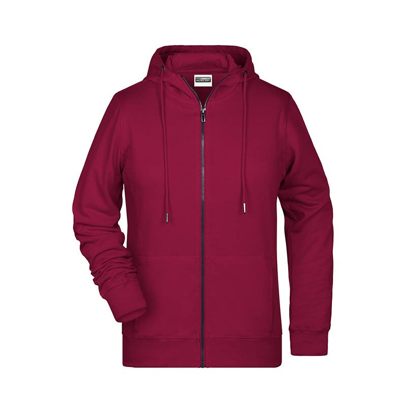 Dámská mikina James & Nicholson s kapucí..Vnější materiál: 100% bavlna.Podšívka: 100% polyester.Zip, šňůrky a vnitřek v kontrastní barvě .Kapuce s ochranou brady .Rukávy a pas s elastanem, klokanní kapsa, ploché švy .Zúžený tvar .Hmotnost: 380 g / m2.Bale
