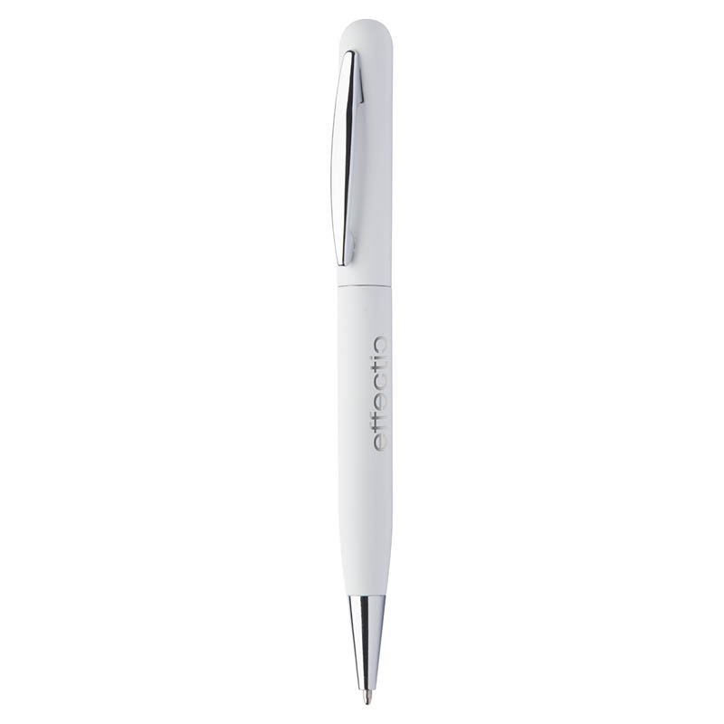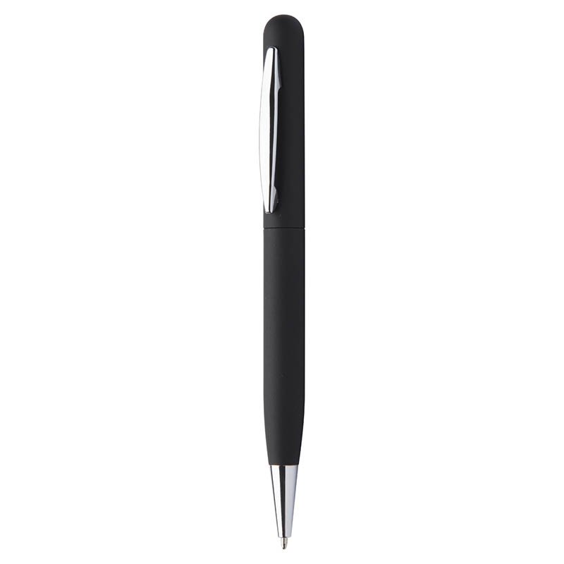 Kovové twist kuličkové pero s pogumovaným povrchem a modrou náplní. Speciální povrch pro laser stříbrného loga.
