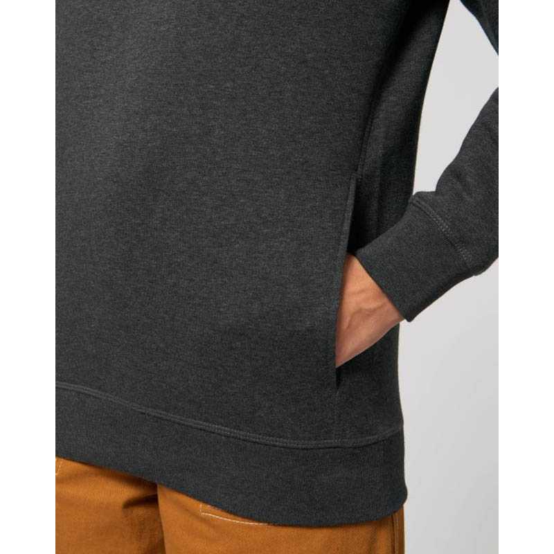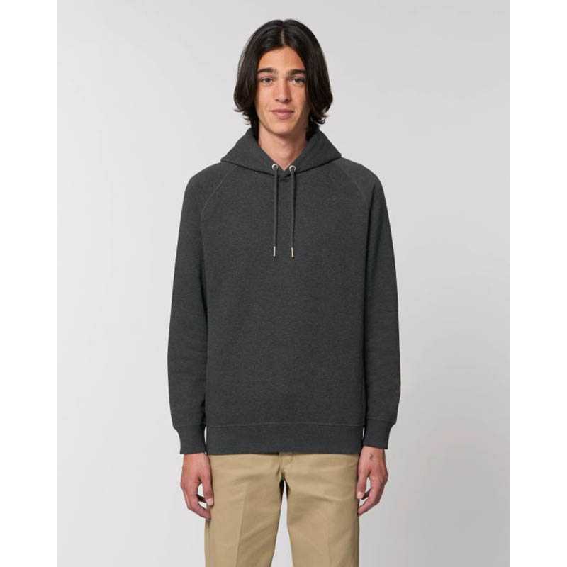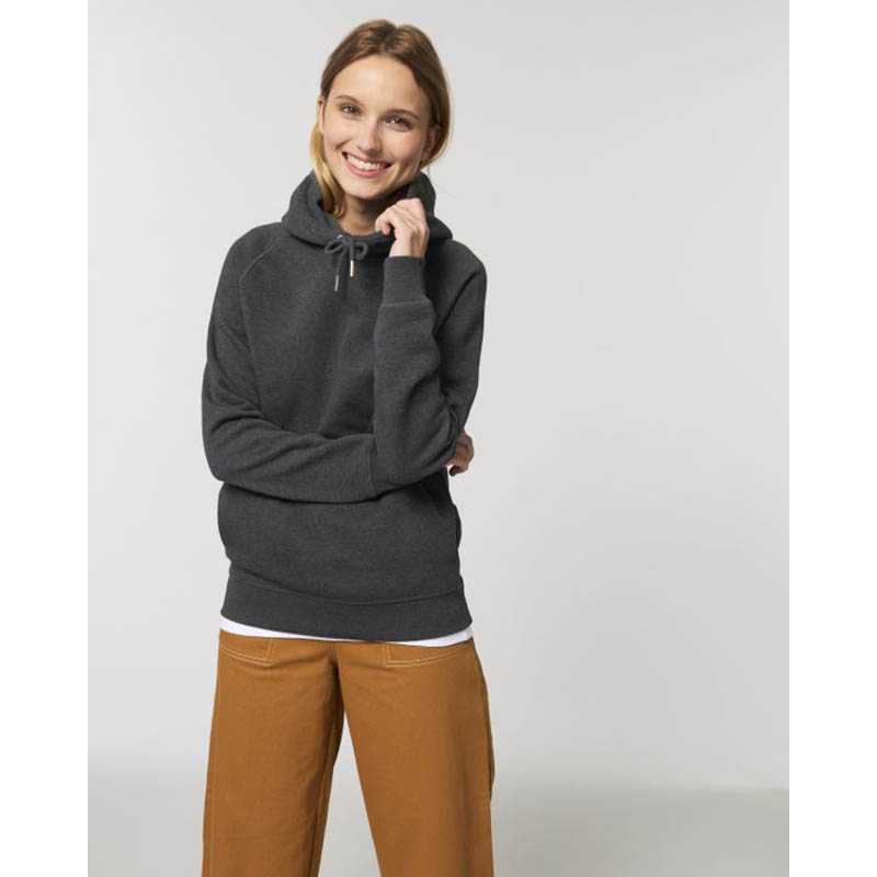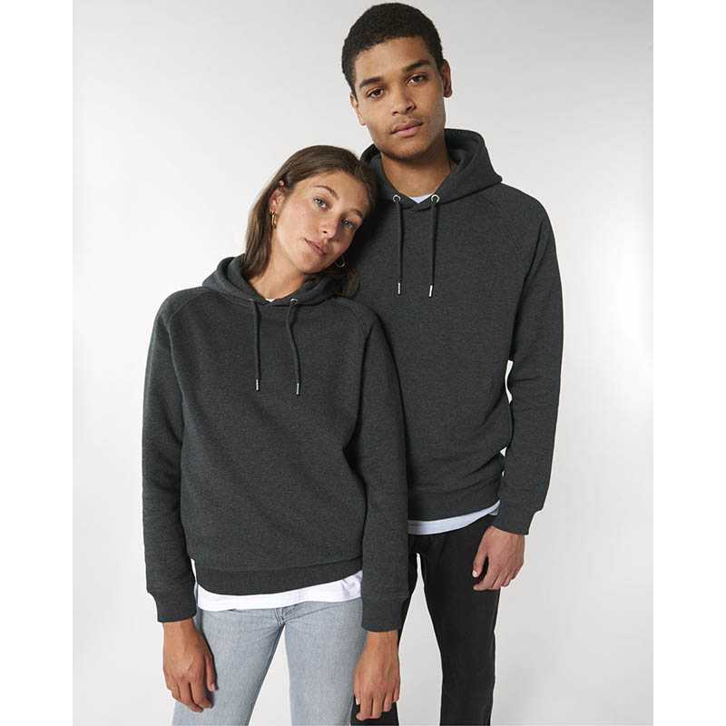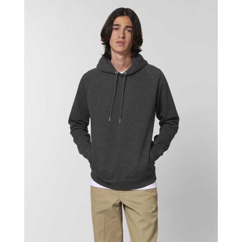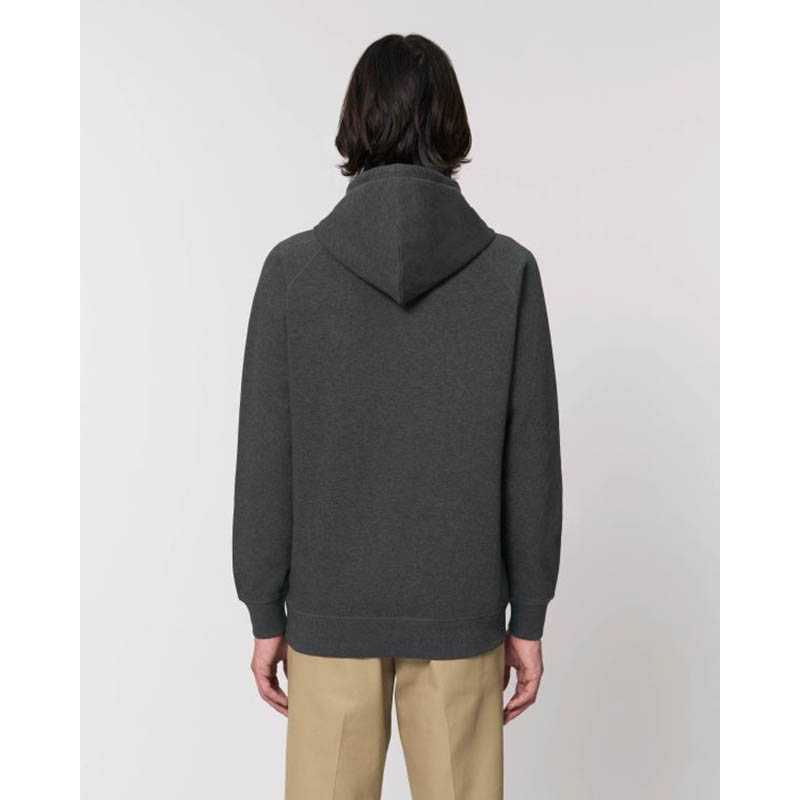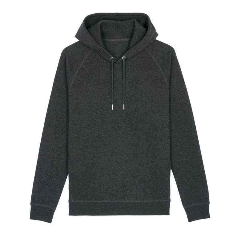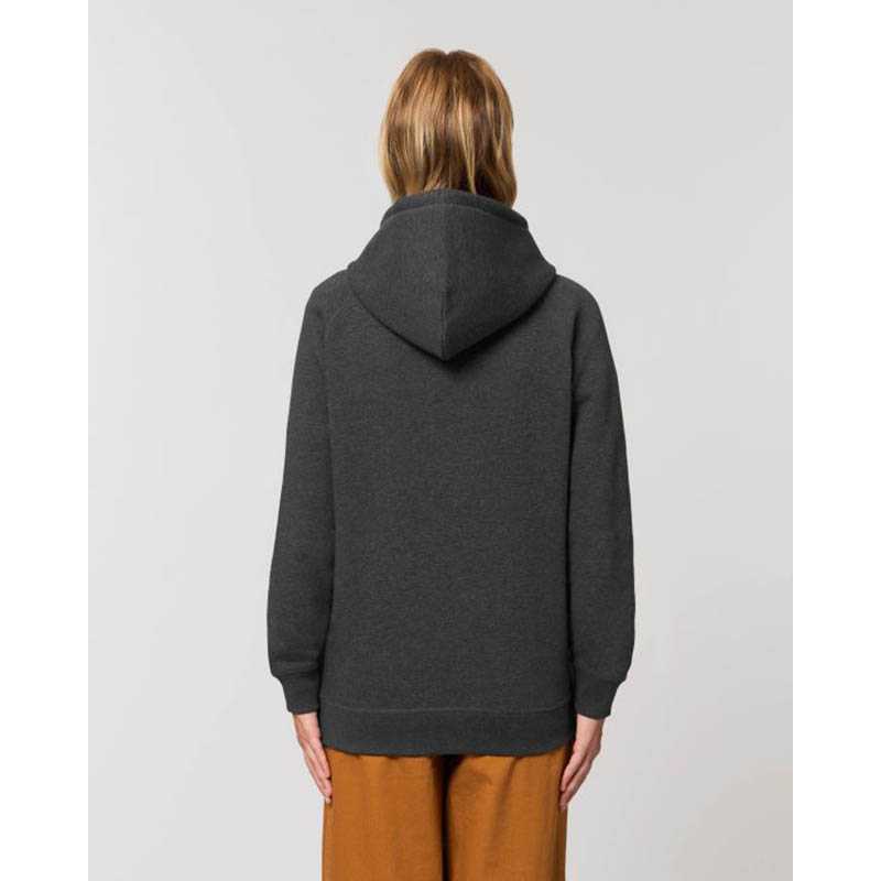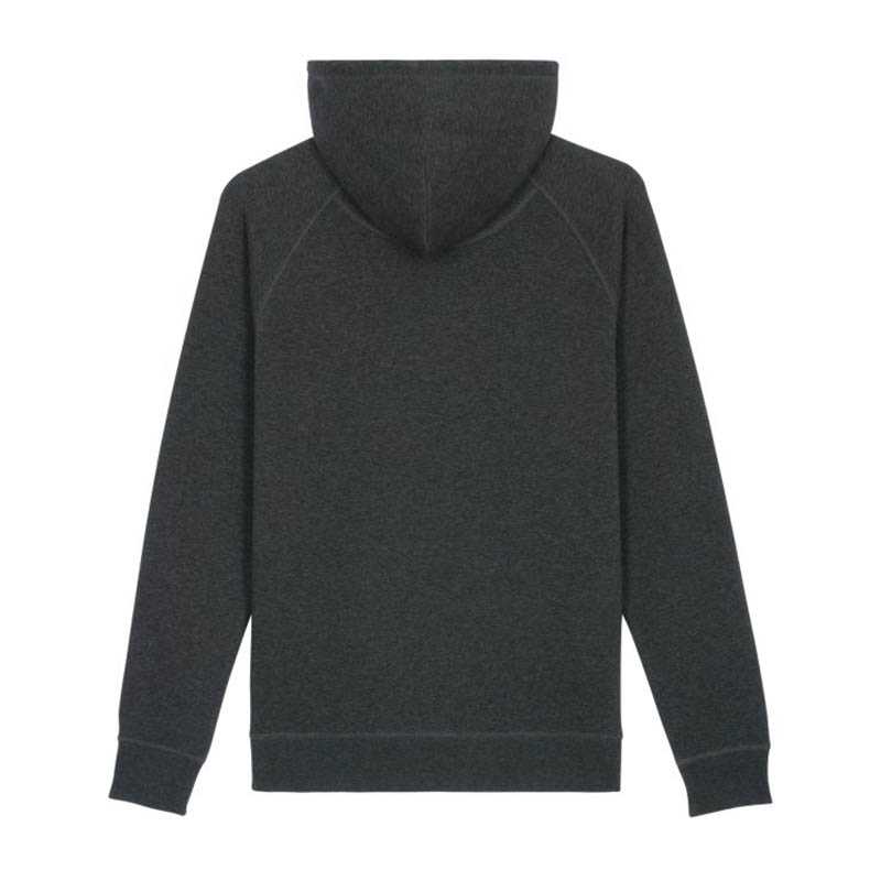 Made from in-house organic cutting waste Set-in sleeve Double layered hood in self fabric Round drawcords in matching body colour with metal tipping Metal eyelets Inside herringbone back neck tape Self fabric half moon at back neck Single needle topstitch