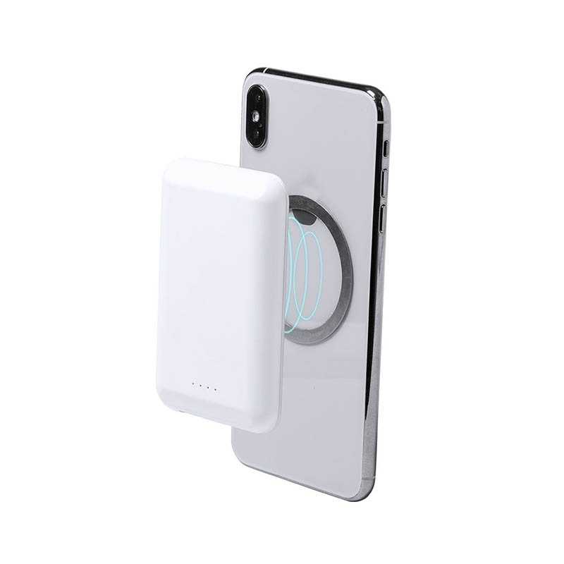 NOVINKA 2025. External auxiliary battery with high-capacity, wireless charging technology -5,000 mAh-. Compact design with magnetic mount allowing the device to be used while charging. Type-C power input and USB output connection, with Type-C charging cable included. ON/OFF button, charging status indicator LEDs and wide branding surface. Presented in an attractive design box, with instruction manual in English and Spanish. Includes adhesive ring, suitable for all devices with Magsafe and Qi technology.The capacities shown in all our external auxiliary batteries are real, all of them incorporating non-recycled, grade A batteries, with a service life of at least 500 charging cycles, and complying with CE regulations. In addition, they are manufactured according RoHS standards, and in compliance with the following safety requirements: Power bank overcharge protection system. Complete discharge protection system, which increases the durability of the power bank. Blocking system to prevent short circuits. Constant charging transfer system, in accordance with the capacity of the target device.