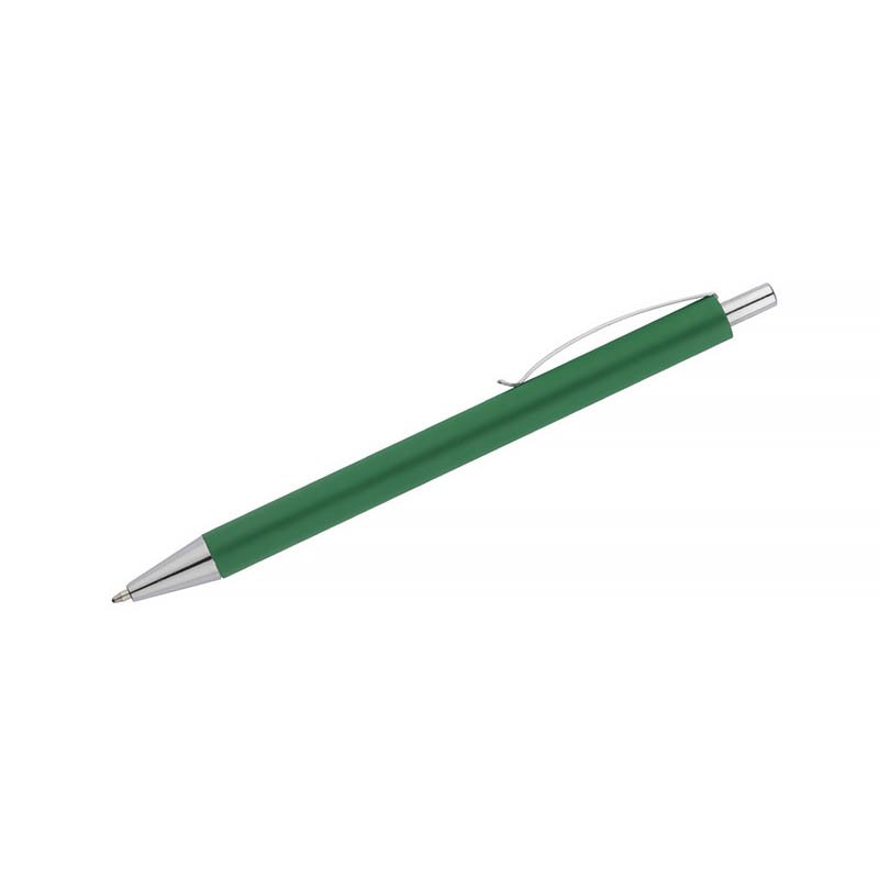 Guľôčkové pero z hliníka s modrou gélovou náplňou (hrot 1 mm) s rebrovaným úchopom.