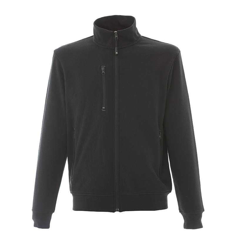 "Cotton – polyester sweater - Ribbed collar - Zip waterproof - Full zip - One zip-pocket on the chest - Two zip-pockets - RIbbed neck, cuffs and band at the waist - Stiching"
