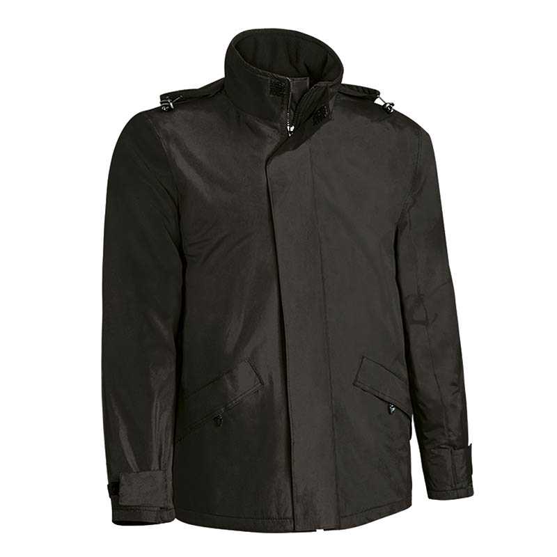 "Polyester pongee jacket - PVC coated - Polyester padding - Polyester lining - Detachable sleeves - Fleece inside collar - Removable puller with italian colors - Frogs on shoulders - Chest pocket with fold-away badge-pocket - Two double pockets - Inner wal"