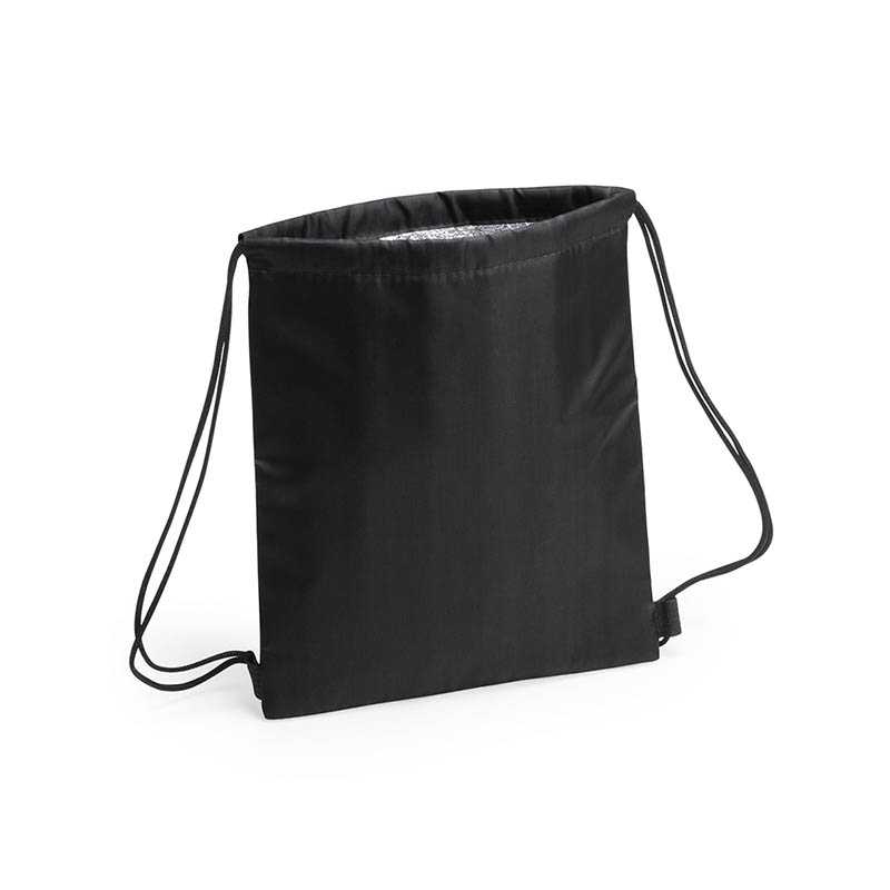NOVINKA 2025. Drawstring cooler backpack in soft 210D polyester. Aluminium padded inside to keep the temperature and comfortable to carry using its black self-closing drawstring handles. Reinforced corners and maximum capacity of 4L. Available in a wide range of original colours.