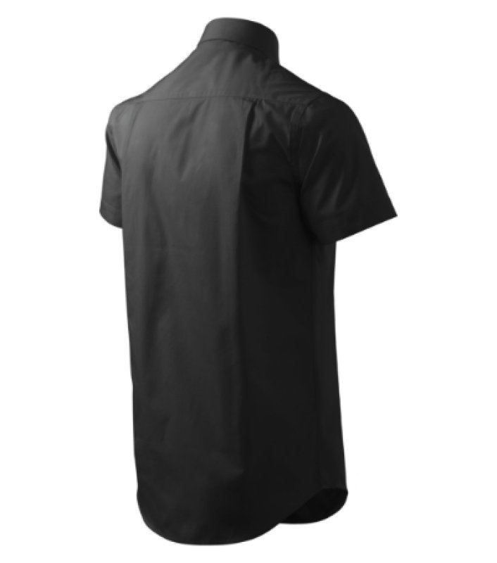 Tkanina.65 % polyester, 35 % bavlněný popelín.105 gsm.Vlastnosti.Vyztužený límec formálního střihu.Levá náprsní otevřená kapsa.Krátké rukávy.Barevné knoflíky na barevných tričkách.Střih na míru.Snadná péče.