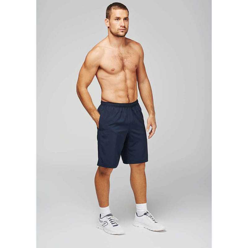 Sportovní kraťasy z recyklovaného polyesteru.Vodě a větru odolný, rychle schnoucí, materiál.Elastický pas se šňůrkou na zavazování.Po stranách kontrastní barva.Uvnitř slipová vložka.Malá kapsička na zip .1/50 . (ks v jednom sáčku / celkem ks v kartonu).