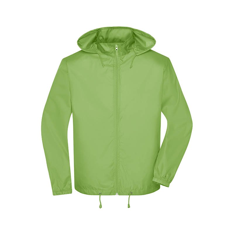 Větrovka pro reklamu i volný čas.Lehká, vodě a větru odolná tkanina.Vodní sloupec 600 mm.V límci je kapuce se šňůrkou.Bunda lze složit a zabalit do jedné z kapes .1/50 . (ks v jednom sáčku / celkem ks v kartonu).