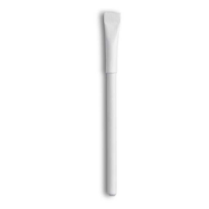 Kuličkové pero vyrobeno z bílého recyklovaného papíru s modrou náplní.