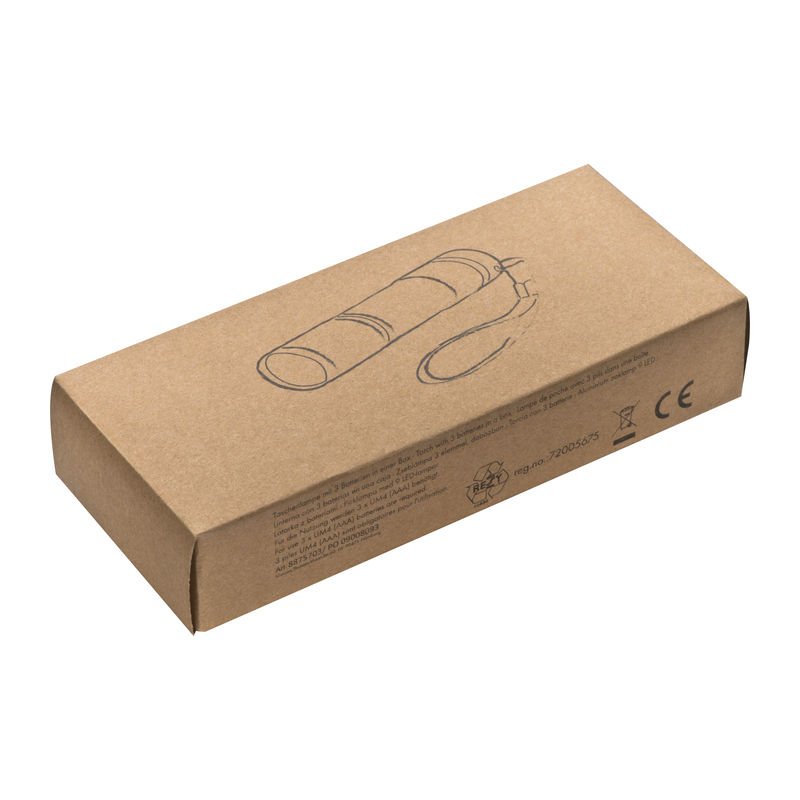 1 LED baterka vyrobená z recyklovaného hliníku s popruhem na přenášení. Funguje na 3 baterie AAA, nejsou součástí balení.