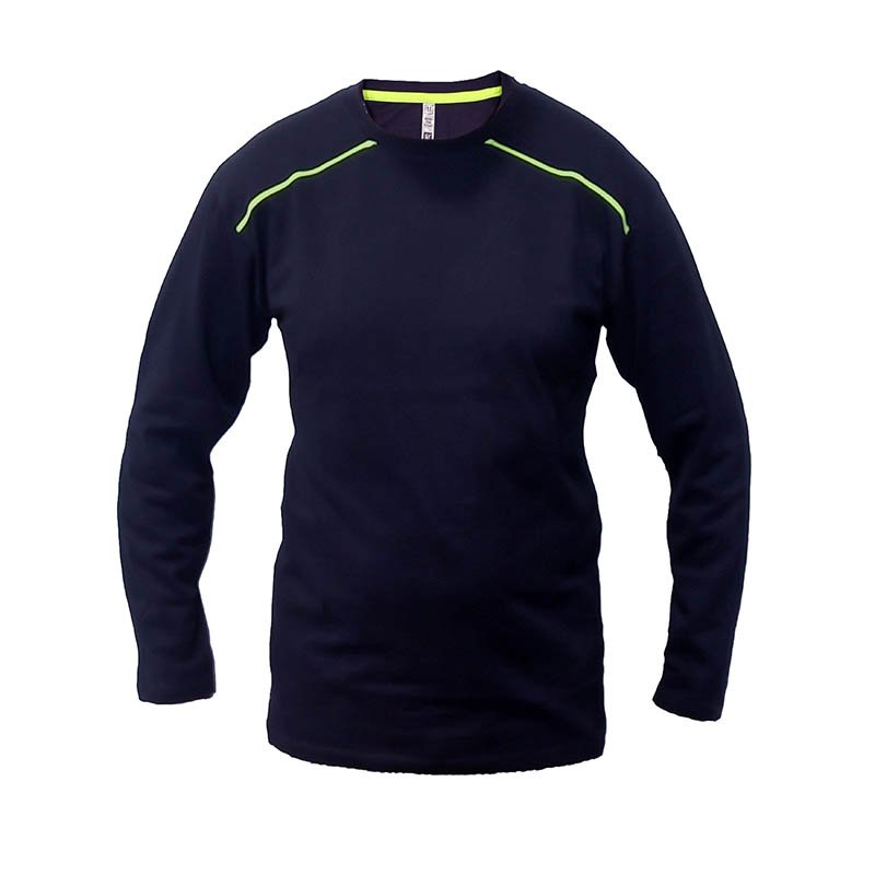 LONG SLEEVE T-SHIRT - 100% combed cotton - Crewneck - Low collar h 1.2 cm - Fluo yellow inner neck tape - Fluo yellow front piping on the shoulders and on the back - Individually wrapped - Sold individually or in bags of 10 pieces - UPF level 50+ sun protection (except color WHITE)