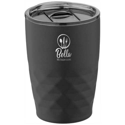 Dvoustěnný nerezový (36% recyklace) vakuově izolovaný kelímek s bambusovým víčkem a silikonovým kroužkem pro extra ochranu. Šálek má kapacitu až 370 ml a udrží nápoje teplé 5 hodiny a studené 24 hodin. Povrch s práškovým povlakem, který mu dodává větší odolnost a pevnost. Dodáváno v dárkové krabičce z kraftového papíru. Protože je výrobek vyroben z přírodních materiálů, barva a velikost výrobku a výsledek tisku se mohou u jednotlivých výrobků lišit. o80 x 106 mm