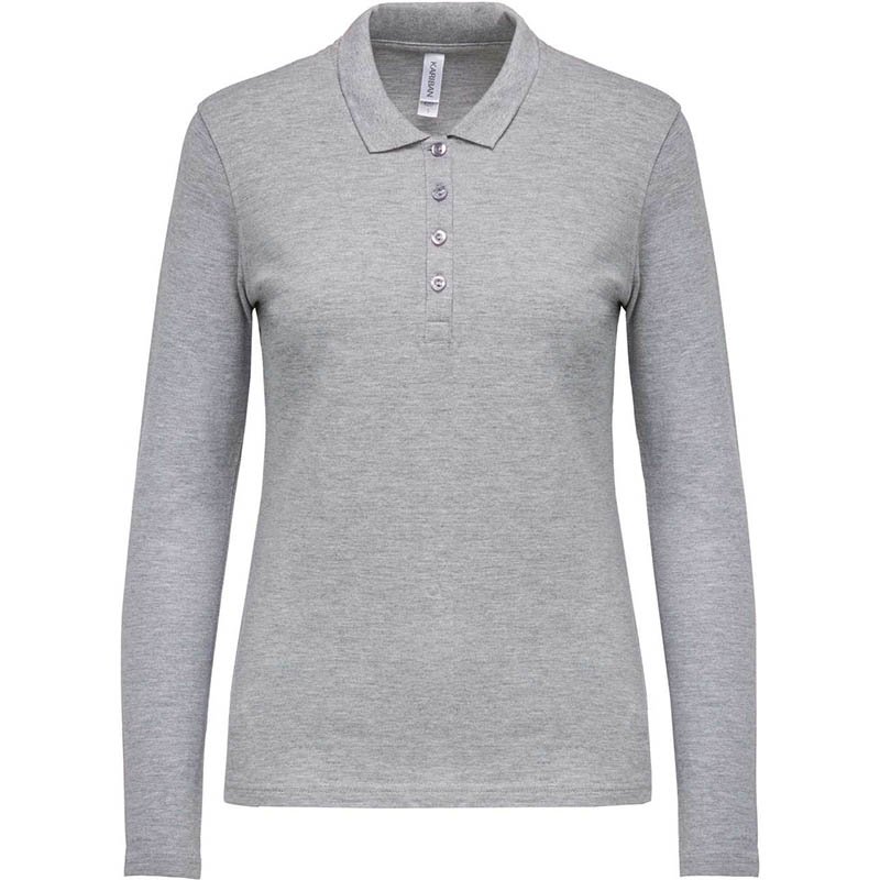 WOMEN's long-sleeve Polo. Piqué Fabric. 100% RingSpun pre-shrunk Cotton. 210 g/m2 Placket with 3 buttons. Shoulder-to-shoulder reinforced neck tape to avoid deformation 1x1 rib kni