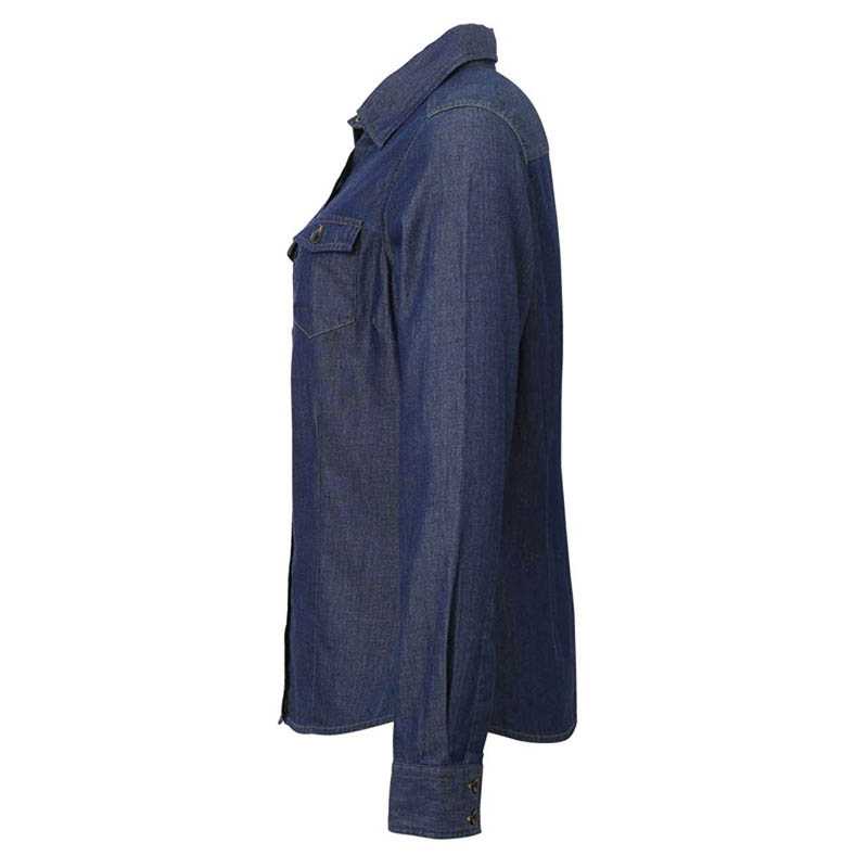 Tkanina.100% džínová bavlna Ringspun.155 gsm.Vlastnosti.Kontrastní stehování.Dvě náprsní kapsy.Zapínání manžety a ochrany rukávů na knoflíky.Zahnutý lem.Moderní střih.