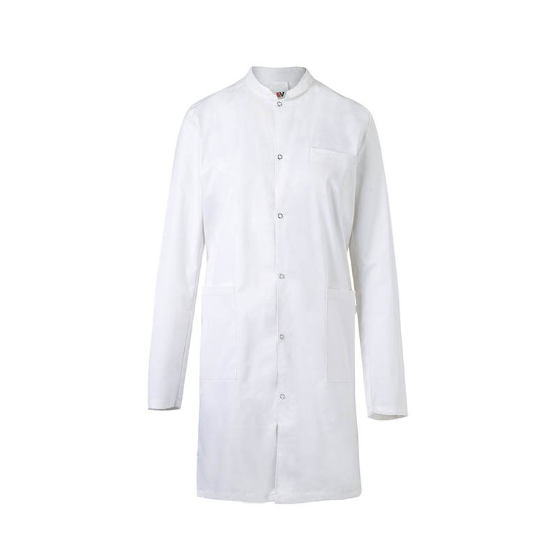 Liquid repellent fabric with antibacterial treatment Asymmetrical front closure with hidden automatic buttons Neckband collar Back fashioned with Coolmax breathable fabric, one-piece Tai