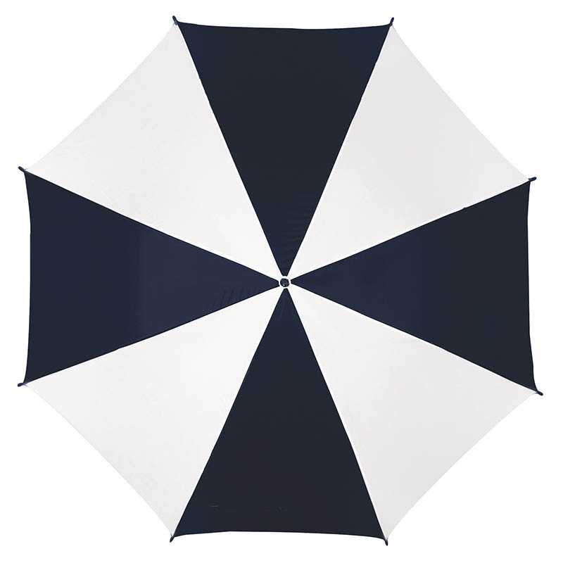 Větruodolný 23palcový deštník s automatickým otvíráním. Rám ze skelných vláken a panely z tkaniny 190T pongee. Plastové špičky a vršek. Pogumovaná ohnutá rukojeť z PP plastu. Manuální zavírání.