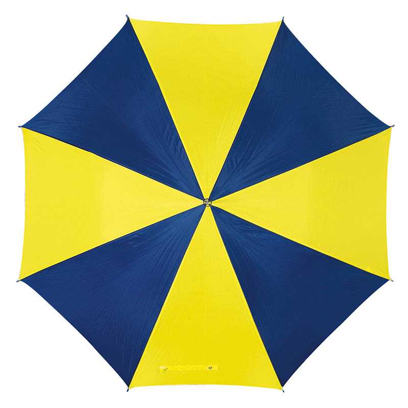 Automatický hliníkový deštník s měkkou rukojetí, polyesterovým potahem a panely různých barev a velikostí. Způsob potisku sítotisk.