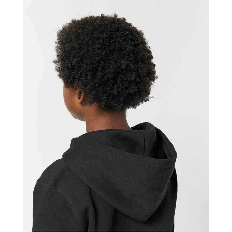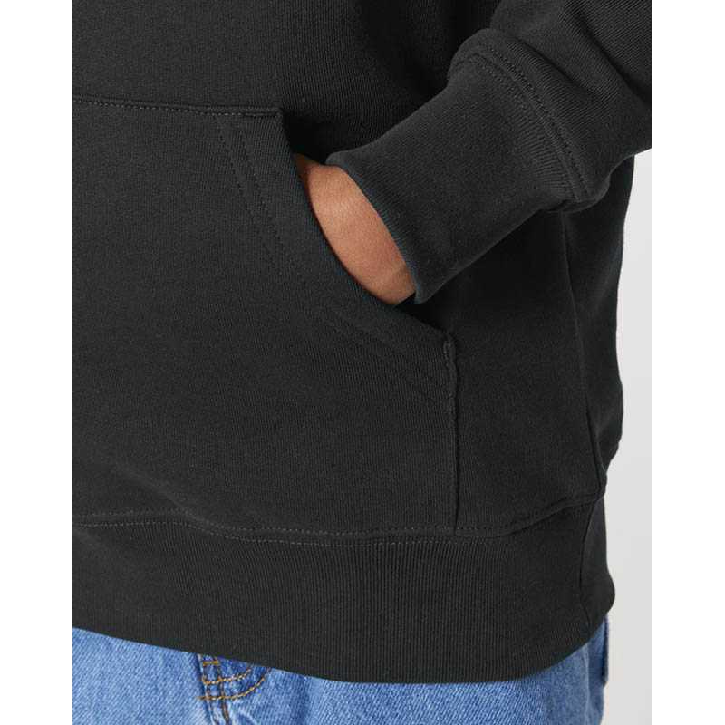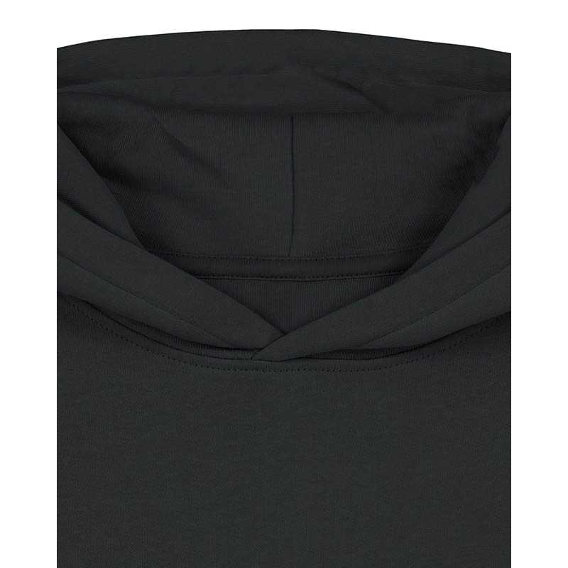 Set-in sleeve Double self Fabric lined hood Inside back neck tape in single jersey Self fabric half moon at back neck with 3 mm twin needle Single needle topstitch at neckline seam 1x1 rib at sleeve hem and bottom hem 2 needle topstitch centered on s