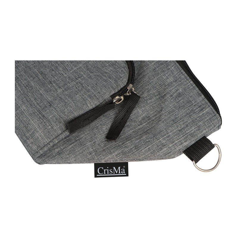NOVINKA 2025. Document bag with zipper closure in an elegant grey colored 600D polyester. External pocket with velcro closure, comfortable reinforced handles, adjustable shoulder strap with carabiner closure and accessory at the back for trolley bar adjustment.