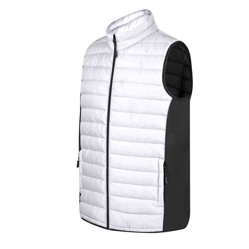 NOVINKA 2025. Wind and water resistant vest in a warm combination of soft shell and polyester materials, with padded interior. Elegant construction in a wide range of colours, with black details and sides. Zip fastening and side zip pockets with pullers for easy opening. Available in sizes S, M, L, XL, XXL.