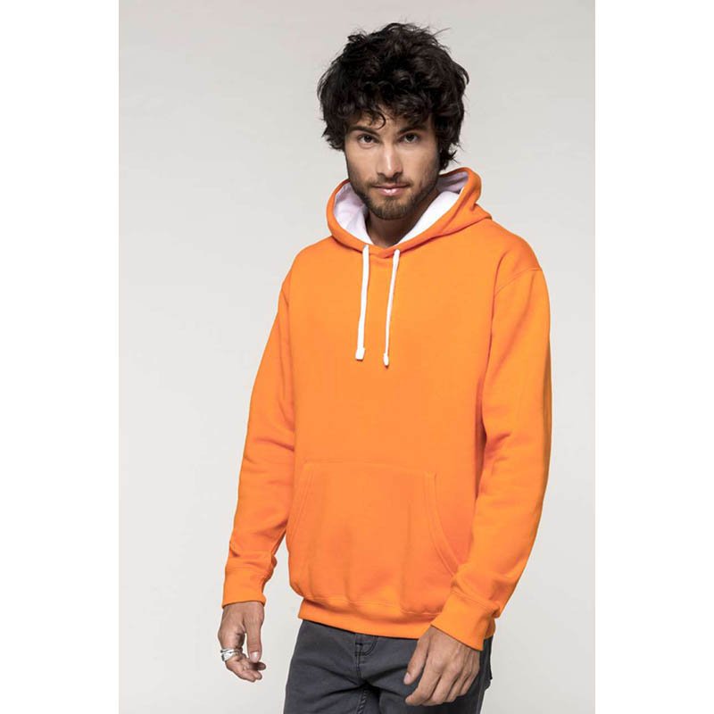 Hoodie with Kangaroo Pocket.Made of durable and long-lasting plush cotton-polyester blend fabric with an inner brushed for optimal thermal insulation and extra comfort.Elasticated ribbed cuffs and waistband for comfortably fitting.Double layer hood with regulable drawstring for a better adjustment and a comfortable fit.A large central kangaroo pocket for convenient storage. Suitable marking methods: screen printing, embroidery, transfer printing, badges, shields. Ideal as promotional clothing, daily use, school uniform, merchandising, workwear, for a personalised gift and more.