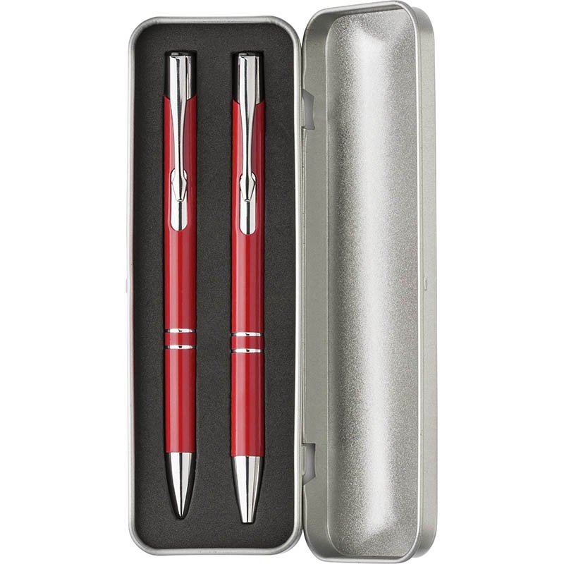 Aluminium writing set consisting of a lacquered ballpen with black ink and a mechanical pencil. Packaged in a metal pen case. Provided with German Dokumental Ink.