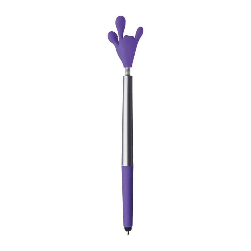 Vtipné flexibilní plastové kuličkové pero s rukou na vrchu. Přinese zábavu na Váš stůl. S dotykovou funkcí pro mobilní telefony a tablety. Způsob potisku tamponový tisk.