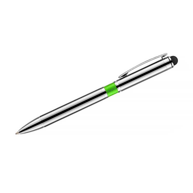Elegantní kovová pero s barevným pruhem a dotykovým pero.