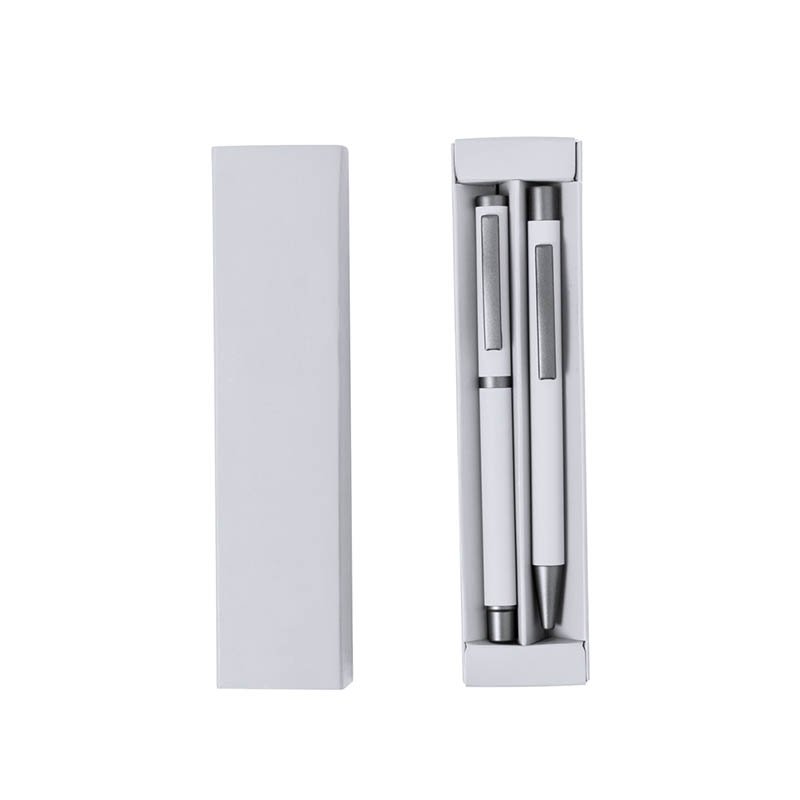 Sada obsahuje guľôčkové pera a bezatramentové pero, obidve vyrobené z recyklovaného hliníka (94%). Guľôčkové pero má modrý atrament. Dodávané v darčekovej krabičke z kraftového papiera, vyrobené z certifikovaného FSC™ materiálu.