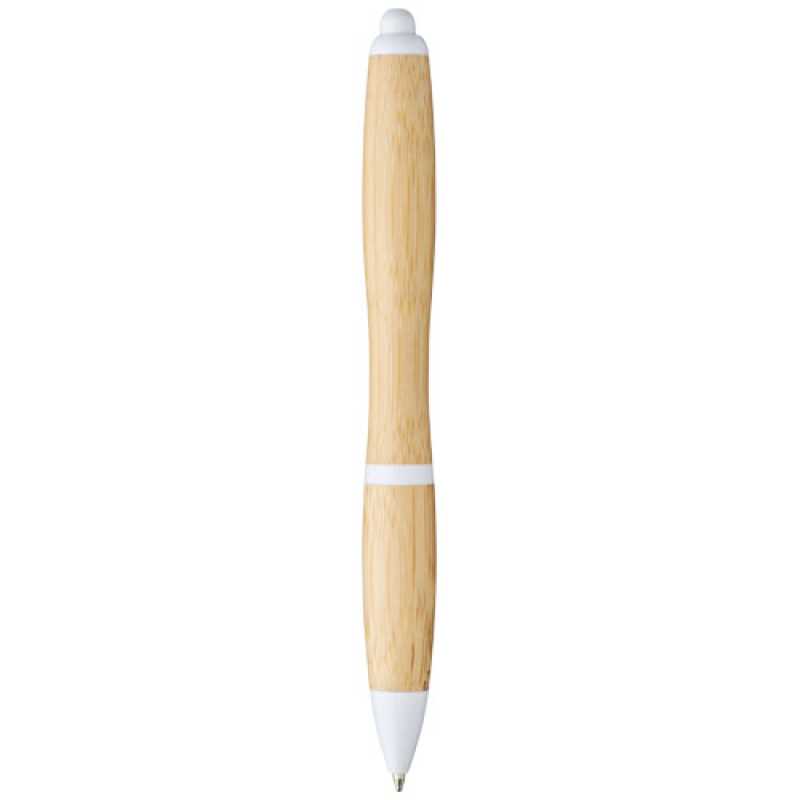 Ekologické kuličkové pero se stiskacím mechanismem, tělem vyrobeným z bambusu, s detaily z ABS plastu a chromovou sponou. Barva bambusového materiálu se může různit.