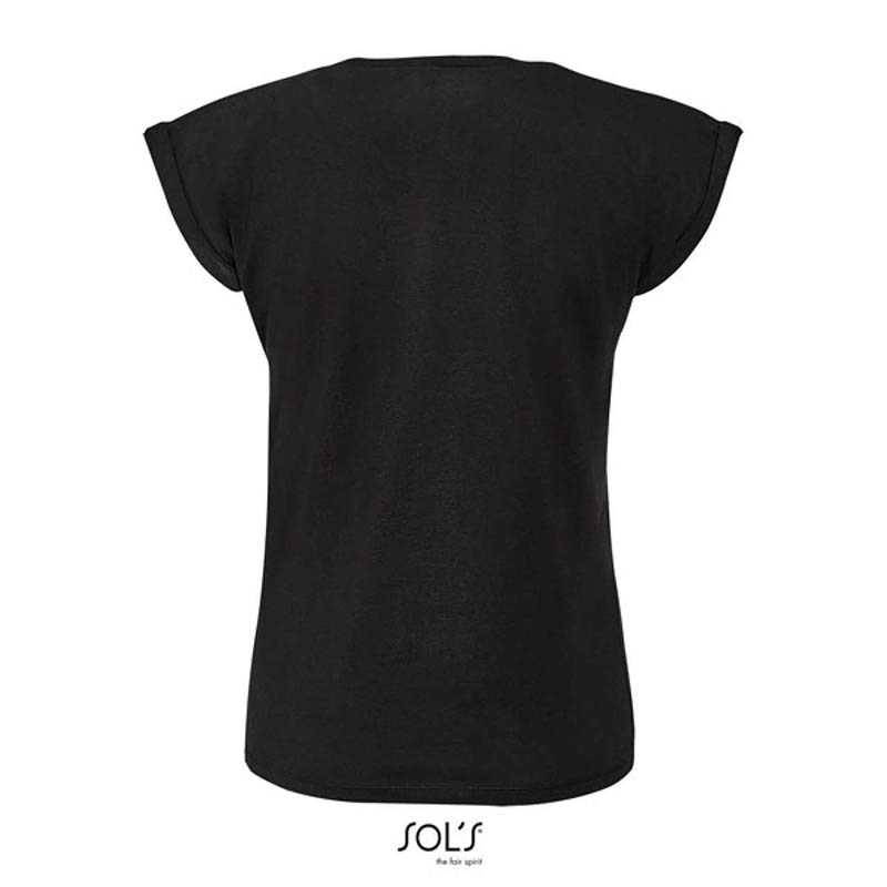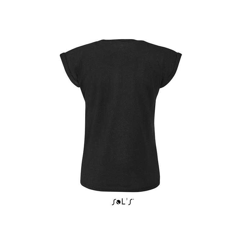 lehce vypasovaný střih s bočními švy, průkrčník lemován vrchovým materiálem, zpevnění ramenních švů páskou, rukávy kratší délky, silikonová úprava.Single Jersey, 100 % bavlna, silikonová úprava.