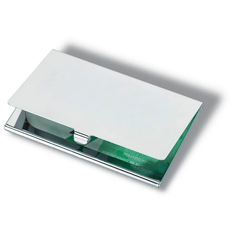 Pouzdro na vizitky z matného kovu. Způsob potisku gravírování.