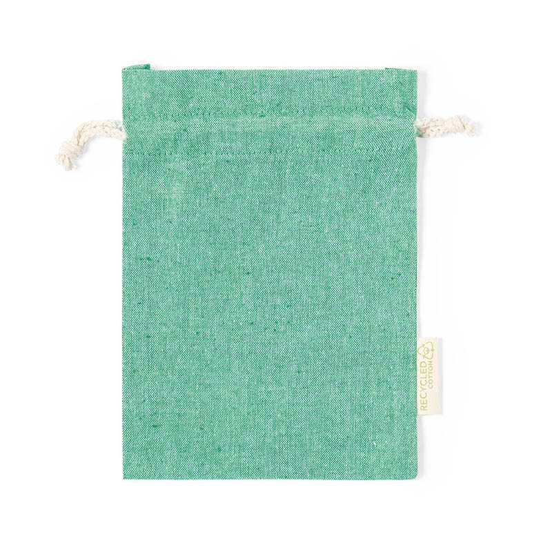 NOVINKA 2025. Eco-friendly bag made in resistant recycled cotton material of 120g/m2. GRS (Global Recycled Standard) certification, guaranteeing the recycled origin of the material used to manufacture the product. Cotton drawstring closure and stitched finish, including outside label with recycled cotton logo.